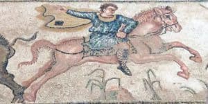 Un mosaico enorme que parece contener los principales intereses de esta familia de forrados de finales del Imperio Romano: son unas muy bellas escenas de caza, mitología griega y también, lo más curioso de todo, lo que parece ser un álbum de fotos familiar, impreso en el suelo del salón principal de la casa.
