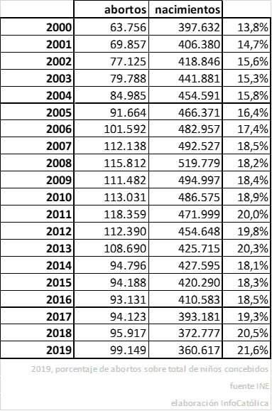 O lo que es lo mismo, que el 21,6% de los niños concebidos es abortado, o lo que es lo mismo, que más de 1 de cada cinco niños no nace por voluntad de su madre y de una sociedad que lo consiente.