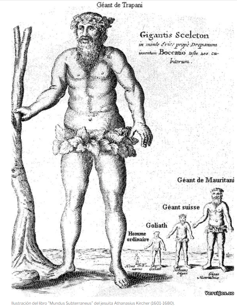 En la mitología, la existencia de gigantes es una constante. En el registro bíblico, está el filisteo Goliat, que medía seis codos y un palmo o el equivalente a casi 3 metros. O la raza Nephilim procedente de los dioses caídos e hijos de los dioses. Según la versión de Helena, hay 12 Titanes, liderados por Cronos, que luchó contra su padre Urano a petición de su madre Gea. También se puede leer la epopeya sumeria del rey Gilgamesh, de 7 metros de altura, que ya menciona el diluvio universal.