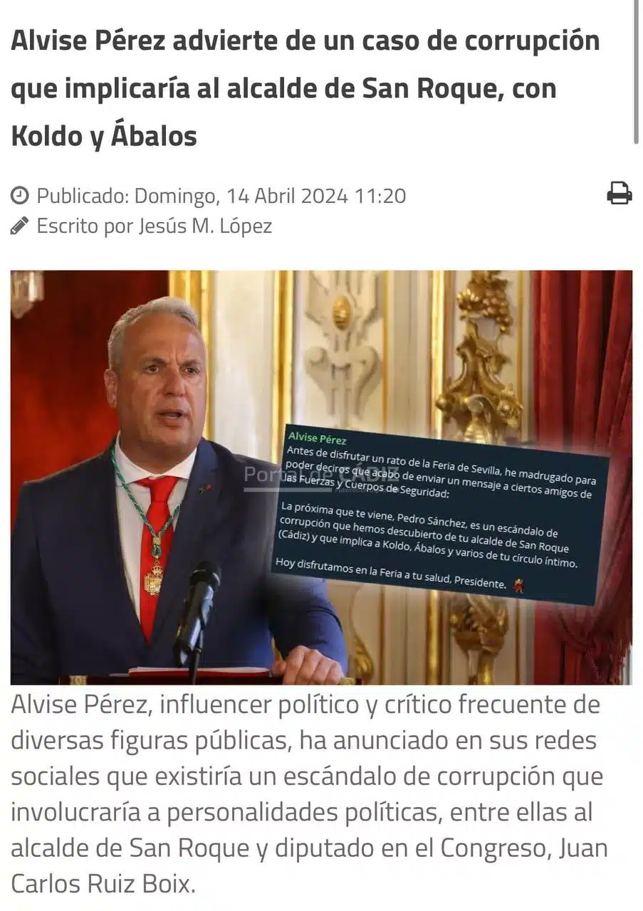 Entre los clientes frecuentes que Alvise Pérez analizó en escuchas activas, se encontraba el alcalde de San Roque, Ruiz Boix, un personaje sacado directamente de una novela de intrigas políticas.