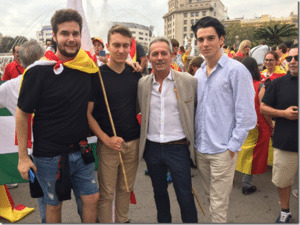 El presidente de Som Identitaris (SOMI) y concejal de Plataforma Vigatana en el Ayuntamiento de Vic (Barcelona), Josep Anglada, junto con otros dirigentes del partido, se sumaron ayer a la manifestación en la ciudad condal para conmemorar el Día de la Fiesta Nacional. Los miles de manifestantes recorrieron el tramo correspondiente entre el Paseo de Gràcia de Barcelona y la plaza de Cataluña, para no sólo celebrar la unidad de España, sino también para reivindicar el papel de la capital catalana como «garante de la Hispanidad».