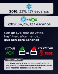 «Lo dejo en esa reflexión y tendrán que contestar algunos partidos sobre si esto es algo positivo para su electorado o si a lo mejor se dan cuenta que su electorado va a empezar a pensar que es mejor concentrar el voto en las generales para o tener otro Gobierno franknstein o sanchestein», ha avisado.