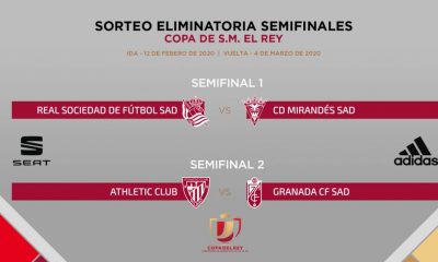 Athletic Club-Granada y Real Sociedad-Mirandés serán las emparejamientos de semifinales de la Copa del Rey, de acuerdo al sorteo celebrado este viernes en la Ciudad del...