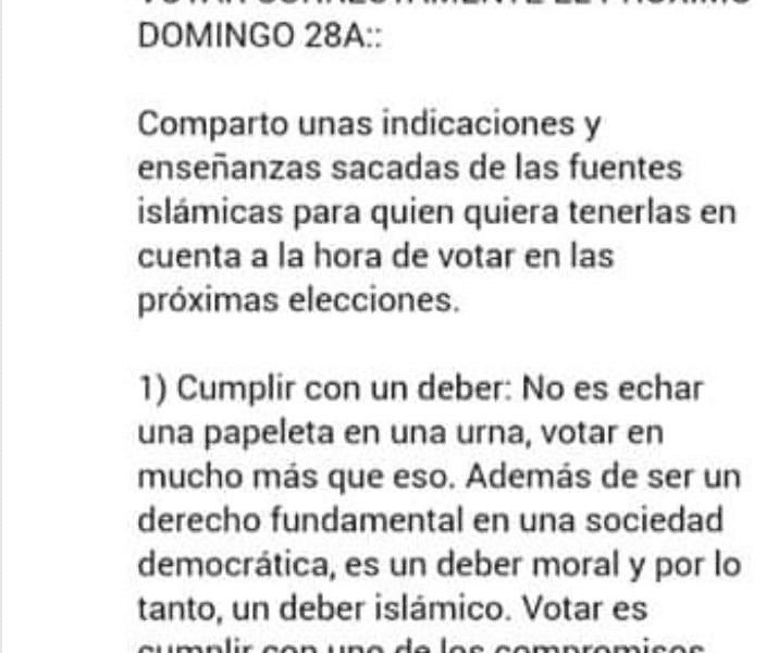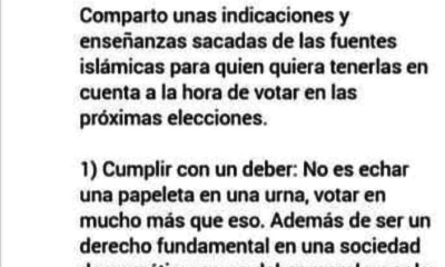 Un mensaje está circulando por las redes sociales en el que se recomiendan 10 principios islámicos a tener en cuenta para votar correctamente en las elecciones...
