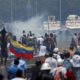 Un grupo de manifestantes venezolanos comenzaron a enfrentarse con militares simpatizantes del gobernante Nicolás Maduro alrededor de la base aérea de La Carlota, en Caracas, donde...