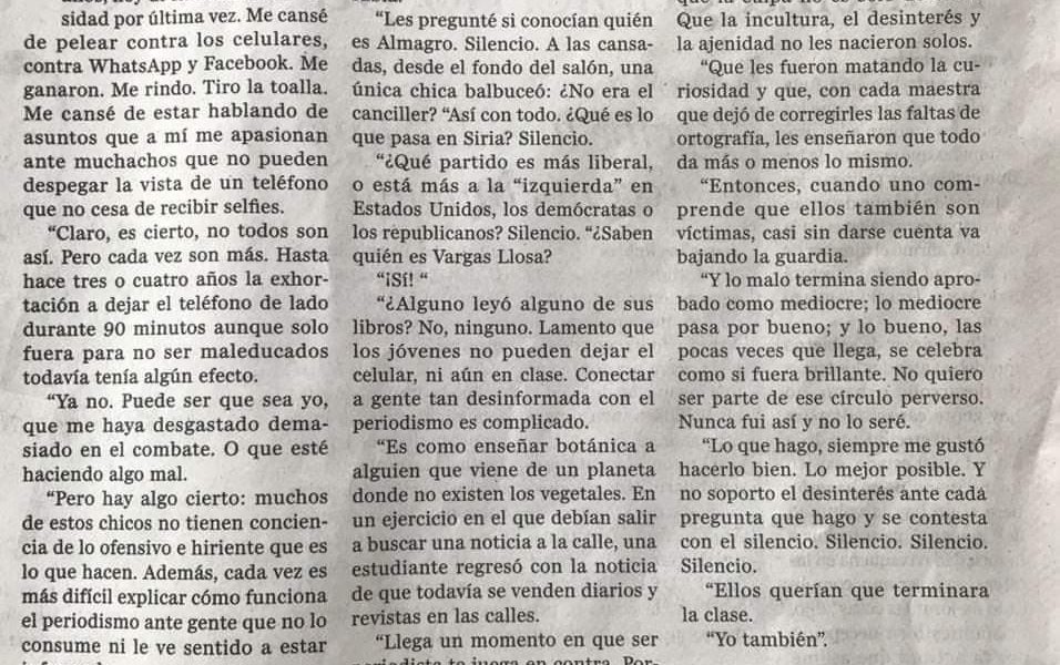 El periodista y académico uruguayo Leonardo Haberkorn renunció a su puesto como profesor universitario en Montevideo hace dos años, y quiso explicar sus razones en una...