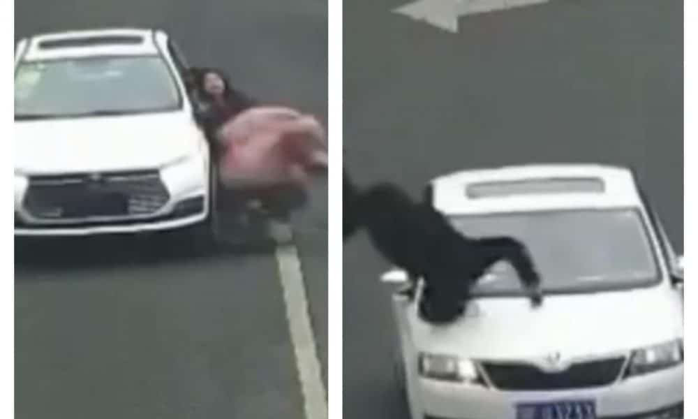 En las imágenes publicadas por cámaras de seguridad y transporte de la ciudad de Yichang, China, se aprecia en un primer momento como un coche de...