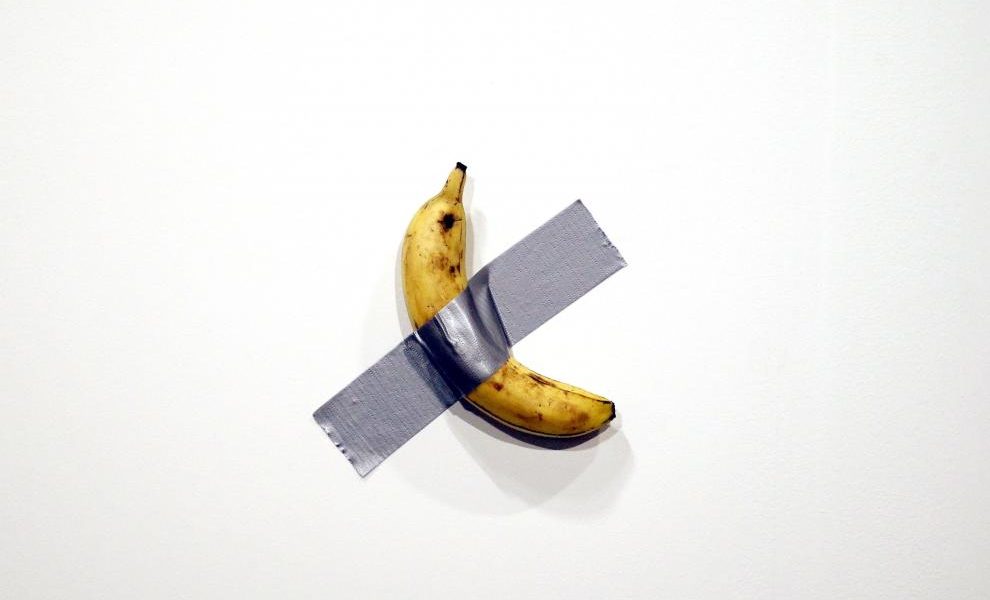 ‘Comedian’, la instalación del artista italiano Maurizio Cattelan hecha con una banana pegada a la pared con cinta adhesiva que se vendió por 120.000 dólares en...