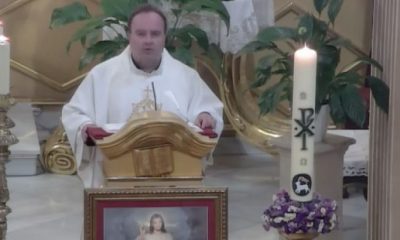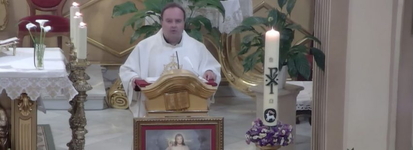 Misa del Domingo de la Divina Misericordia. Celebración retransmitida en directo por Telearchena, televisión local de Murcia. El celebrante, el párroco de la localidad y vicario...