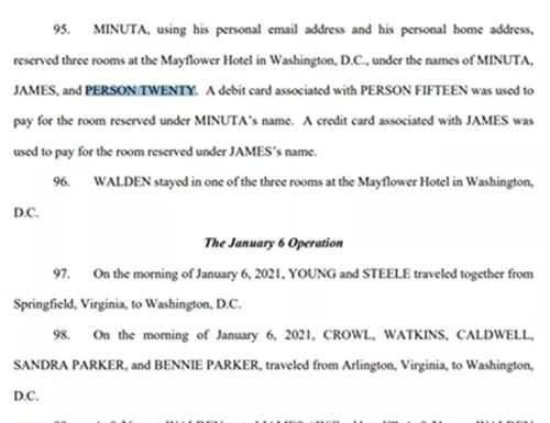 La misma presentación contiene otras 19 personas no identificadas, enumeradas simplemente como personas del Uno al Veinte. Se alega que todos ellos participaron en la organización, planificación y ejecución del caos el 6 de enero en diversas capacidades.