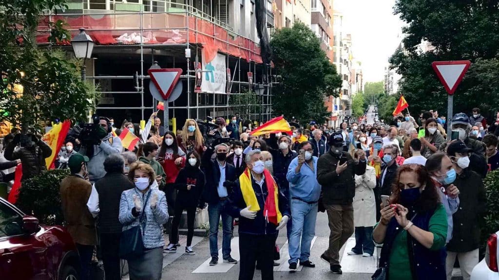 Tras una alerta de algunos vecinos molestos con las protestas, la Policía se personó este miércoles en la calle Núñez de Balboa sobre las 21.00 horas, donde unas «100 personas» protestaban contra el Gobierno al grito de libertad.