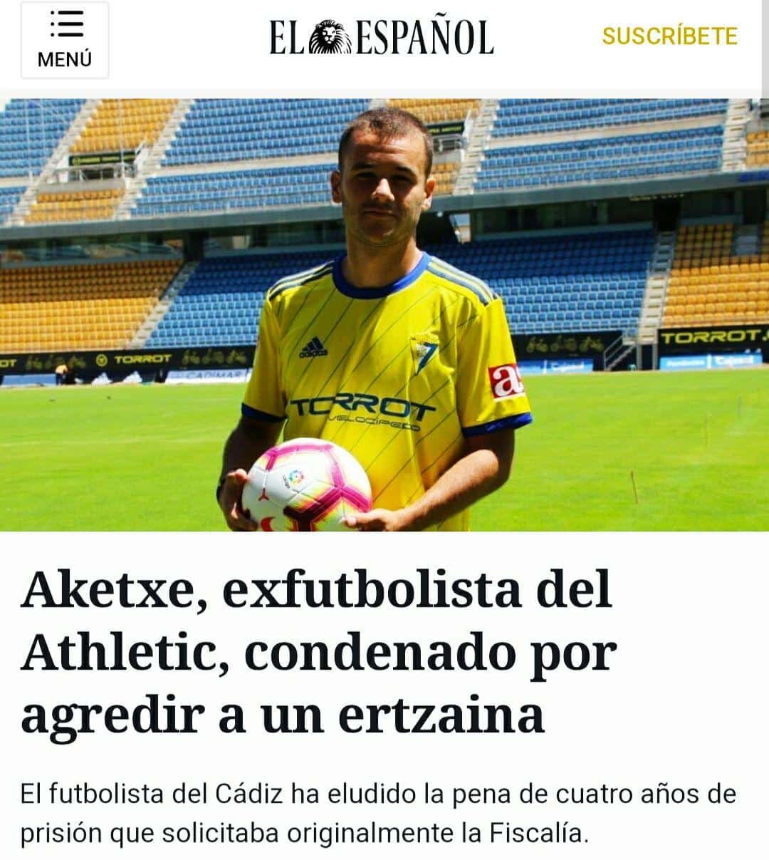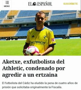 Un exjugador del Athletic por el que según parece estuvo interesado el Racing de Santander, pero que por los motivos que fueran al final no vino a nuestra ciudad. Mucho mejor. Suponemos que, visto lo visto, el no acuerdo no sería precisamente por ningún filtro (no ya político, sino simplemente criminal). Y es que la mayoría no hacemos distingos entre quienes dan un tiro en la nuca y los cobardes que les jalean, pero parece ser que los directivos del Racing de Santander tienen más tolerancia ante estas actitudes inaceptables.