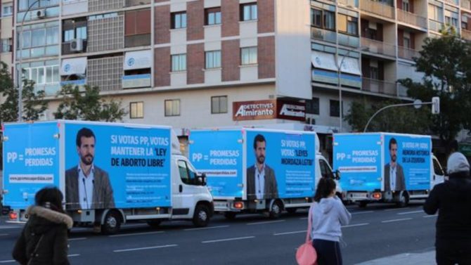 La Policía retira tres furgonetas de Hazte Oír por ofensas a Casado en la jornada de reflexión