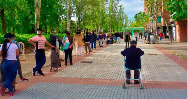 Para el cuarto reparto de comida, el pasado sábado, las más de 700 familias formando una cola interminable alertaron al barrio. La mayoría se tapan la cara con gafas de sol y gorras para paliar la vergüenza de no tener para comer. «Estará contento El Coletas, estamos en Aluche pero esto ya parece Venezuela», dice un vecino que grabó un vídeo de la situación que se ha vuelto viral. «No conocemos a la persona que lo ha grabado, pero lo que se ve es totalmente real y le agradecemos que nos haya ayudado a hacer visible esta situación», dice Ana del Rincón, «esta situación es mucho peor que la de 2008. Aquella fue una crisis que no le tocó a todo el mundo, y se resintió sobre todo el consumo, pero esta afecta a todo el mundo y es una crisis de hambre».