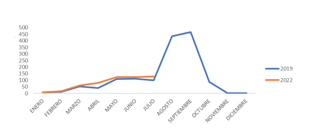 Por otra parte, si analizamos el número de plazas que han abierto sus puertas a lo largo de los siete primeros meses del año, encontramos que esta cifra alcanzó los 120 recintos en 2019 frente a los 190 que han tenido actividad este 2022.