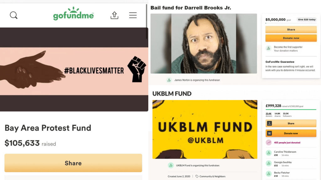Para apoyar estas protestas, tanto en Estados Unidos como en Canadá y Europa, la organización Black Lives Matter pidió donaciones en varias ocasiones por GoFundMe, y en ninguna la empresa retuvo el dinero.