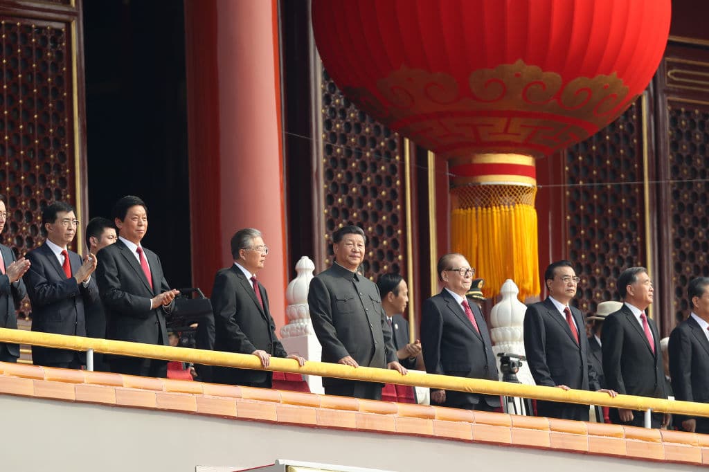 En la imagen, el presidente chino, Xi Jinping (centro), preside el desfile militar conmemorativo del 70º aniversario de la fundación de la República Popular de China celebrado en la Plaza de Tiananmen de Pekín el 1 de octubre de 2019.