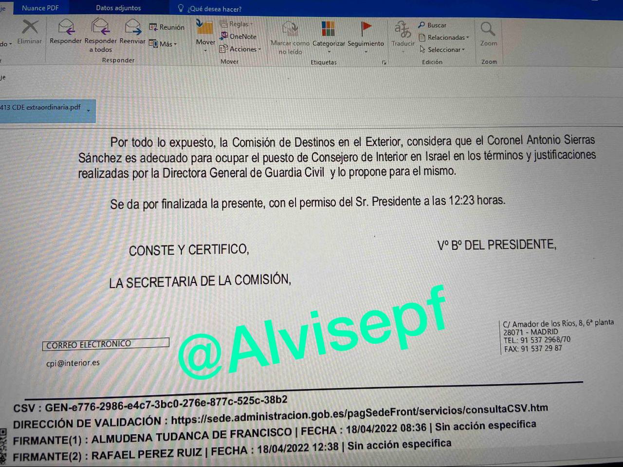 La maniobra para que el coronel haya sido elegido consiste en adelantar nombramiento mediante comisión extraordinaria, de 3 minutos, celebrada por videoconferencia el 13 de abril (tengo el acta)