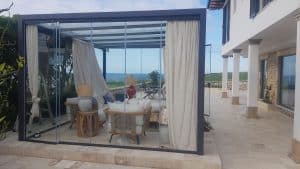 Las pérgolas bioclimáticas en Cantabria están supliendo esta necesidad que tenemos de disfrutar del aire libre sin miedo a que se presente un aguacero o que empiece a soplar el viento o a otros factores climatológicos. Es muy agradable poder disfrutar de nuestras compañías favoritas en un entorno con luz natural temperatura y el nivel de brisa que deseamos, lo que podemos modificar con las lamas del tejado y la cortina de cristal. Es todo ajustable y se puede adaptar a cada momento y situación exterior.