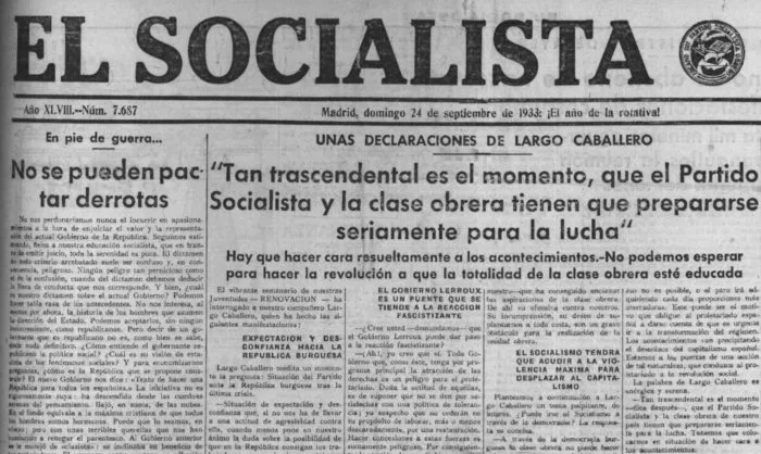 El diario “El Socialista” pasaba por alto los esfuerzos conciliadores de Besteiro para proclamar, contra los lamentos de concordia lanzados por “El Debate”: “¿Concordia? No, ¡guerra de clases! ¡odio a muerte a la burguesía criminal! ¿Concordia? Sí, pero entre los proletarios que quieran salvarse y librar a España del lubridio”. El entonces líder socialista, Largo Caballero, inicia también su largo ciclo de amenazas con la invitación a la lucha callejera.