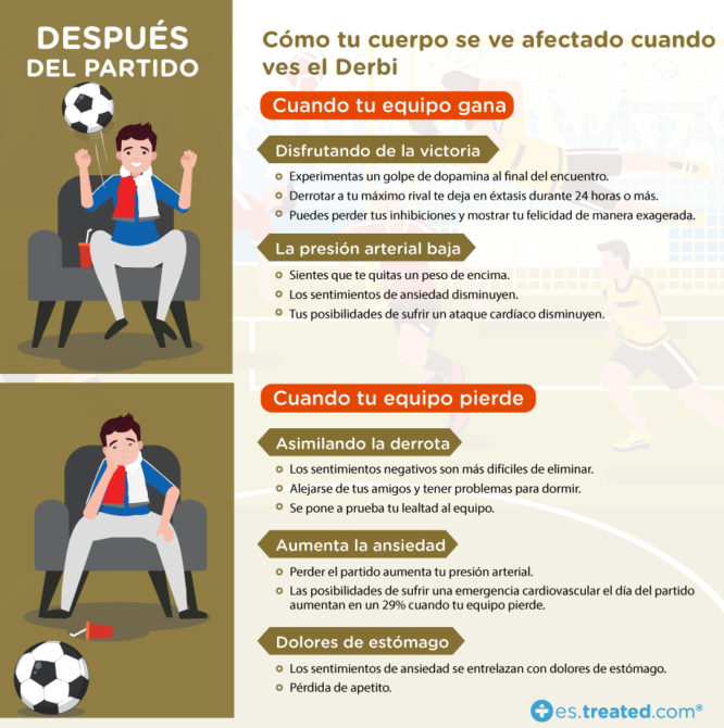Ganar el Derbi puede ser muy importante para tu bienestar. Es probable que esto libere endorfinas, sustancias químicas que el sistema nervioso produce para lidiar con el dolor o el estrés.