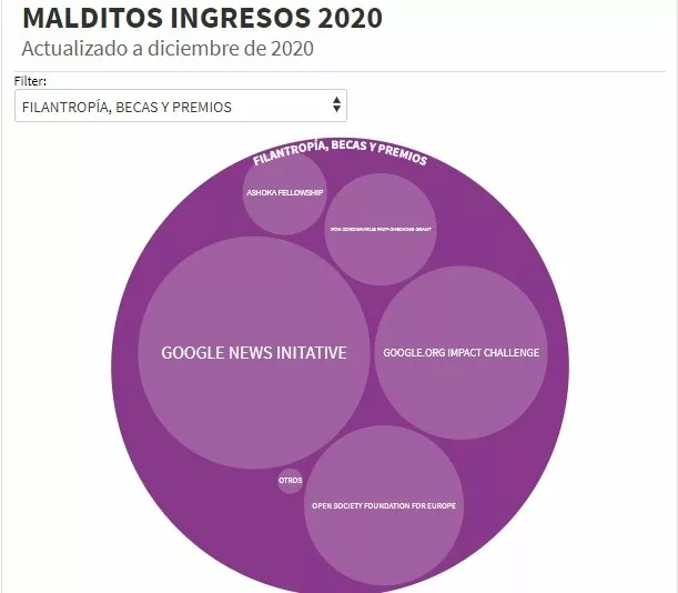 Y así, conocemos que uno de los verificadores favoritos de George Soros en España -los otros dos son Newtral y EFE Verifica- está financiado… por Soros en un 7,9%, bajo el epígrafe Filantropía, becas y premios. Para ser exactos, según la propia Maldita, «Open Society Foundation for Europe: esta entidad filantrópica nos ha concedido una beca a lo largo de 3 años para desarrollar las partes técnicas de la organización como entidad de la sociedad civil. Este es el segundo año».