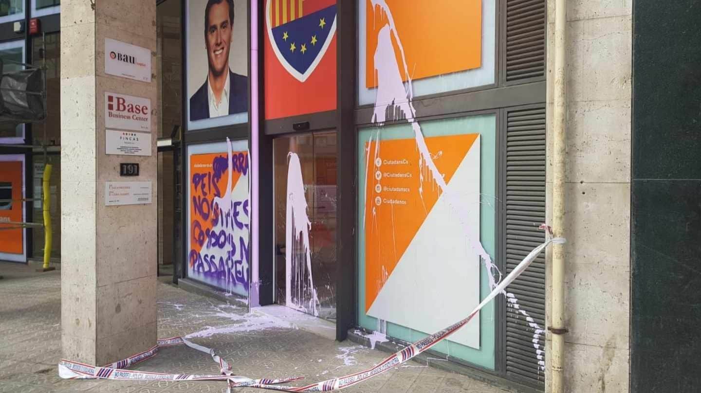 La líder del partido en Cataluña, Inés Arrimadas, ha lamentado que “los fascistas vuelven a atacar la sede de Ciudadanos en Barcelona rompiendo cristales, haciendo pintadas y lanzando pintura”. “Vuestras amenazas, insultos y señalamientos no nos callarán. Seguiremos defendiendo la democracia, la unión y la libertad”, ha publicado en Twitter.