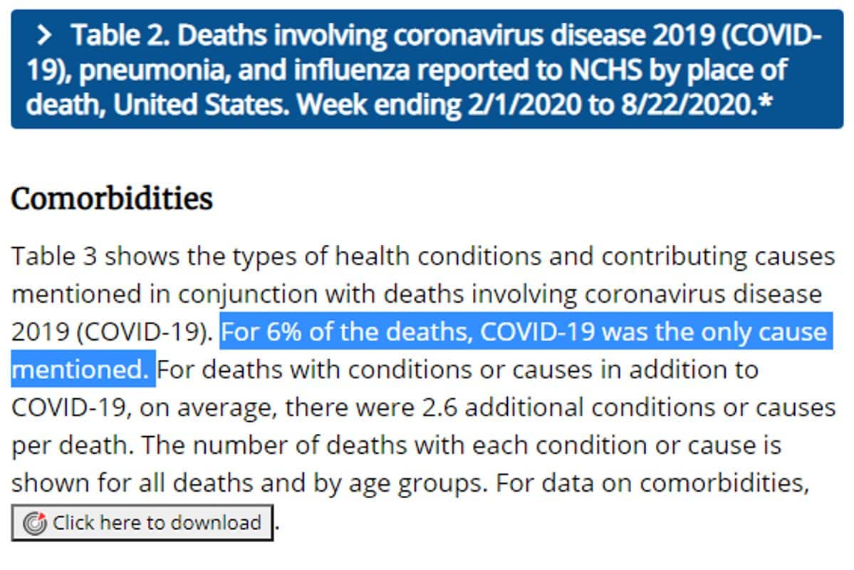 ¡ATENCIÓN! El Centro de Control de Enfermedades revela que solo el 6% de las muertes de COVID-19 en EE.UU. fueron causadas por el virus