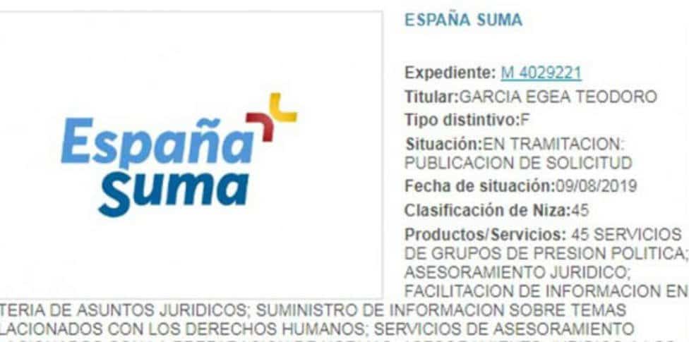 El secretario general del Partido Popular, Teodoro García Egea, ha registrado este miércoles la marca España Suma, así como todas sus marcas regionales como Cataluña Suma...