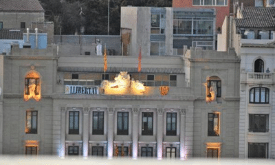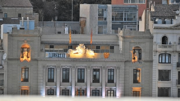 La bandera española ha desaparecido este domingo de la terraza del Ayuntamiento de Lérida en la que habitualmente pende junto a la catalana y la del...