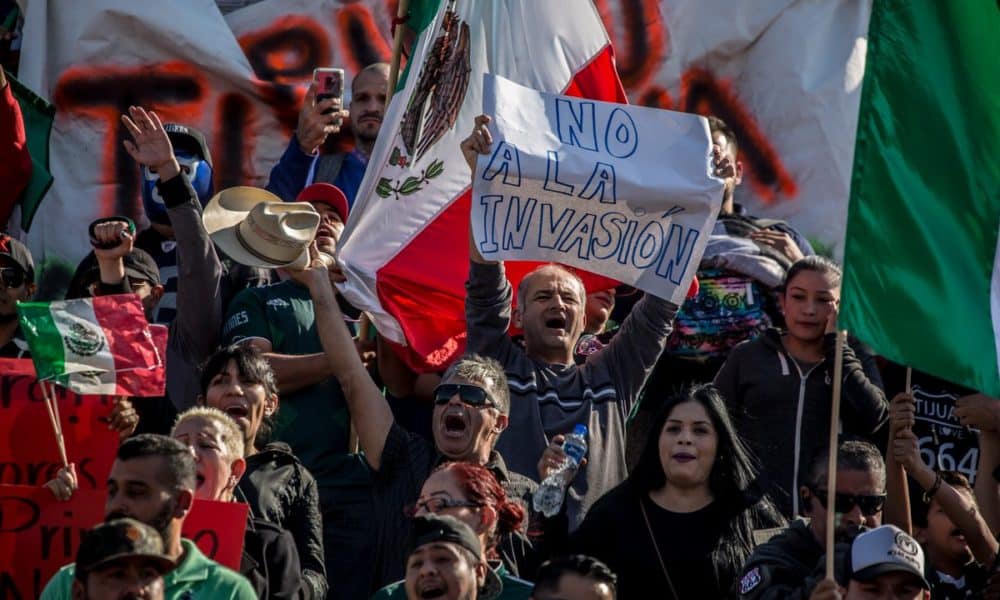 Cientos de residentes de Tijuana se han congregado para protestar contra los miles de inmigrantes centroamericanos que llegaron a la ciudad fronteriza de México con la...