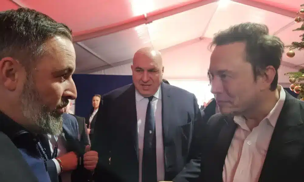 EL EMPRESARIO CONOCÍA AL LÍDER DE VOX A TRAVÉS DE SU ENTREVISTA CON TUCKER CARLSON El presidente de VOX, Santiago Abascal, y el presidente de Tesla y X...
