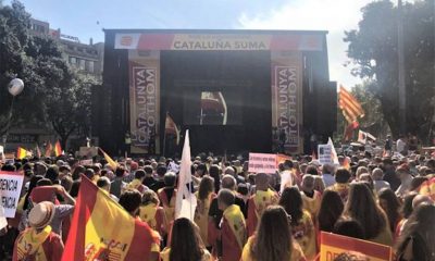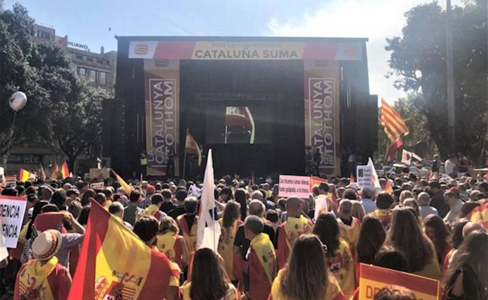 Unas 10.000 personas, según cifras de la Guardia Urbana, y 200.000 según los organizadores, han participado este sábado en la manifestación de Cataluña Suma y Espanya...