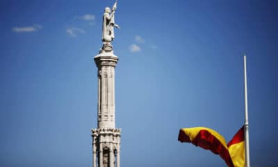 El monumento a Colón, situado en la plaza del mismo nombre en Valladolid, ha amanecido este 12 de octubre salpicado de pintura roja. En la base...