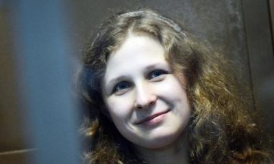 Maria Aliójina, del grupo de punk rock ‘Pussy Riot’, y otro integrante de la gira ‘Riot days Tour’ con la que la banda de punk rock...
