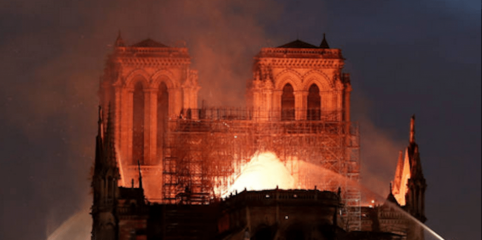 David Engels (*).- 15 de abril de 2019, Francia, París: Las llamas y el humo se elevan desde uno de los hitos más famosos del mundo,...