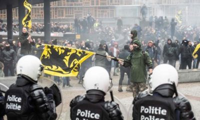 Varios incidentes y enfrentamientos entre la Policía belga y manifestantes identitarios tuvieron lugar hoy durante una marcha convocada por la derecha identitaria en Bruselas para protestar...