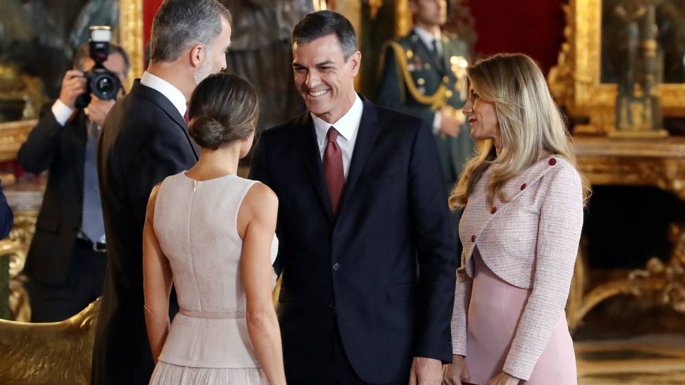 La Casa del Rey ha precisado que el jefe del Gobierno, Pedro Sánchez, y su esposa, Begoña Gómez, siguieron las instrucciones que se les facilitó en la recepción del Palacio...