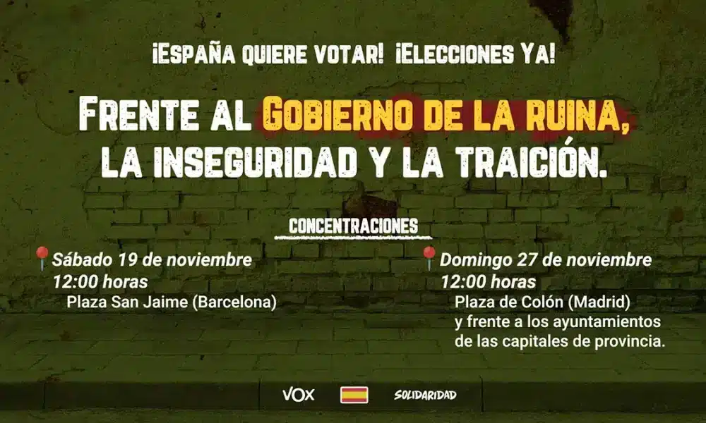 EL 19 DE NOVIEMBRE BARCELONA. EL 27 EN MADRID Y ANTE TODOS LOS AYUNTAMIENTOS DE LAS CAPITALES DE PROVINCIAS VOX y el sindicato Solidaridad convocan una...