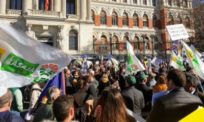 Agricultores que participan en la concentración frente al Ministerio han cortado el tráfico a la altura de Atocha para denunciar la situación la situación que atraviesa...