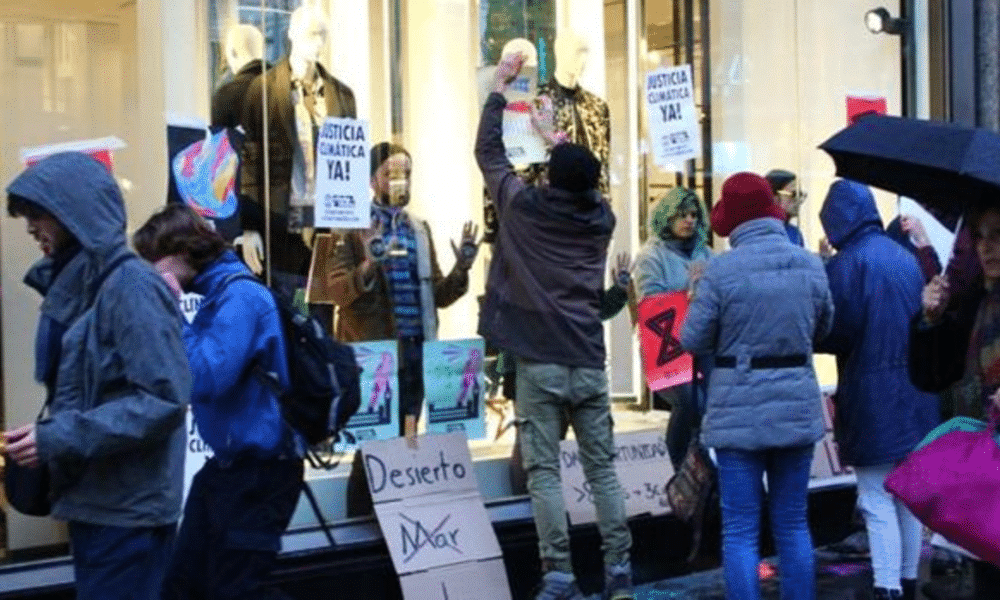 Una treintena de ultras del movimiento internacional Extinción Rebelión han ocupado y vandalizado la tienda de Zara en la Gran Vía como señal de protesta por...