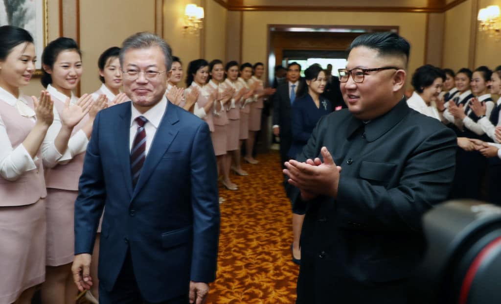 Gordon G. Chang.- El líder norcoreano, Kim Jong Un (derecha), guía al presidente de Corea del Sur, Moon Jae In, durante la visita de éste a Pyongyang, el 18 de septiembre. (Foto: Pyeongyang Press Corps/Pool/Getty Images)