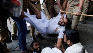 Según medios locales, los manifestantes del BJP fueron golpeados por piedras lanzadas desde una oficina local del Partido Comunista, que gobierna en el estado.