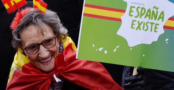 «Banda golpista, partido socialista» o «Se nota, se siente, España está presente» han sido algunas de las consignas coreadas por los manifestantes. Cuando Abascal ha pedido la detención del expresidente de Catalunya, Carles Puigdemont, y del actual jefe del Ejecutivo catalán, Quim Torra, la multitud ha contestado gritando «Puigdemont a prisión» y «Torra a la mazmorra».